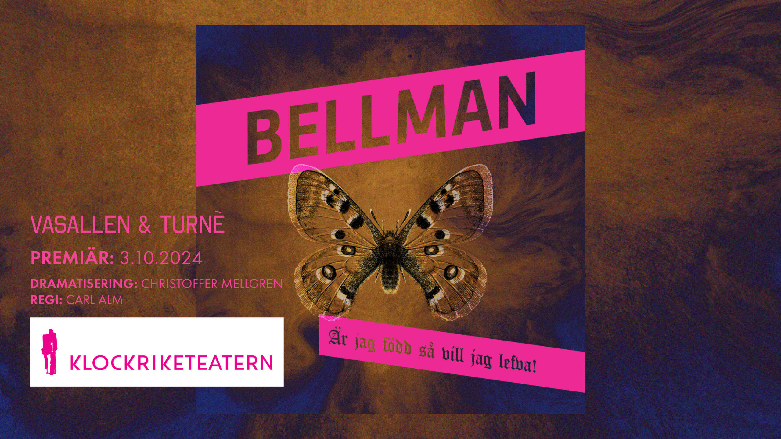 För den vuxna publiken i Wasa Teaters region erbjuds under hösten en turné i samarbete med Klockriketeatern. BELLMAN – Är jag född så vill jag lefva! är en musikteaterföreställning baserad den svenska sångaren och poeten Carl Michael Bellmans liv och verk. Föreställningen är en eloge till det svenska språket och en upplevelse fylld av iver, längtan och drömmar.
