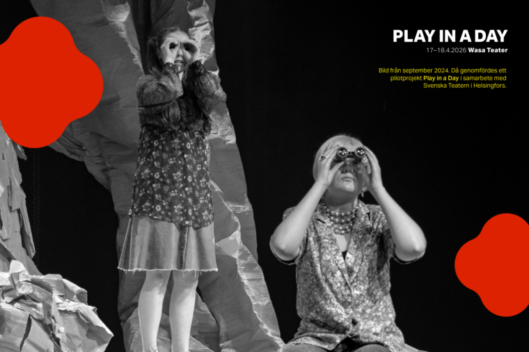 Konceptet Play in a Day har funnits i många olika former runt om i världen. Grundkonceptet innebär att det under 24 timmar skrivs och iscensätts en teaterföreställning, som har premiär och visas för en publik. I september 2024 genomfördes ett pilotprojekt Play in a Day i samarbete med Svenska Teatern i Helsingfors.